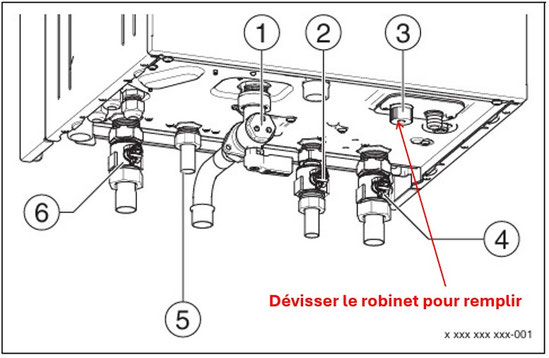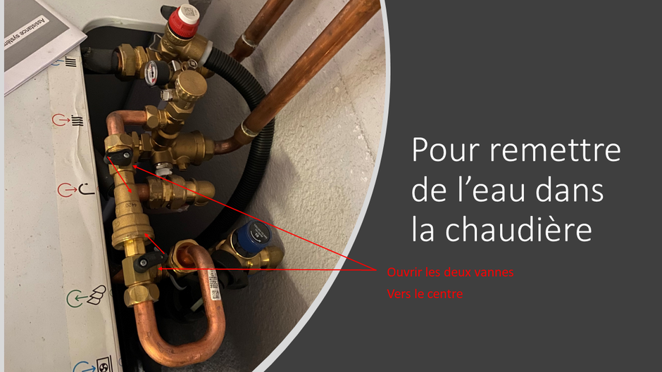 Sur les chaudières OXYLIS Elm Leblanc Il suffit de tourner le petit robinet à droite et plutôt vers l'avant sous la chaudière.